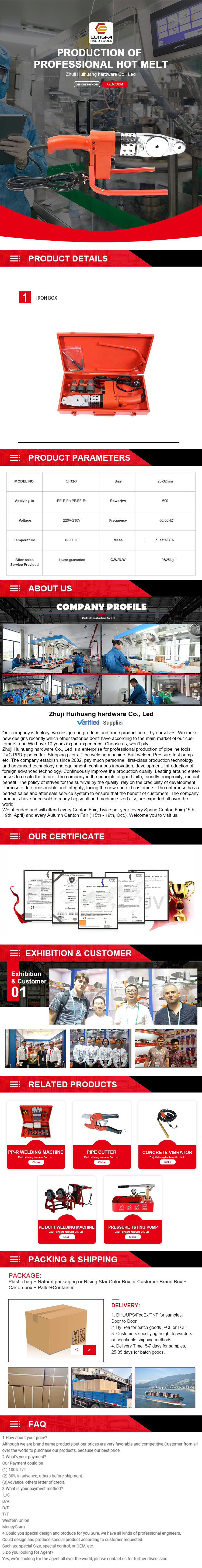 Zhuji Huihuang hardware Co., Ltd is a enterprise for professional production of pipeline tools, PVC PPR pipe cutter, Stripping pliers. Pipe welding machine, Butt welder, Pressure test pump etc.